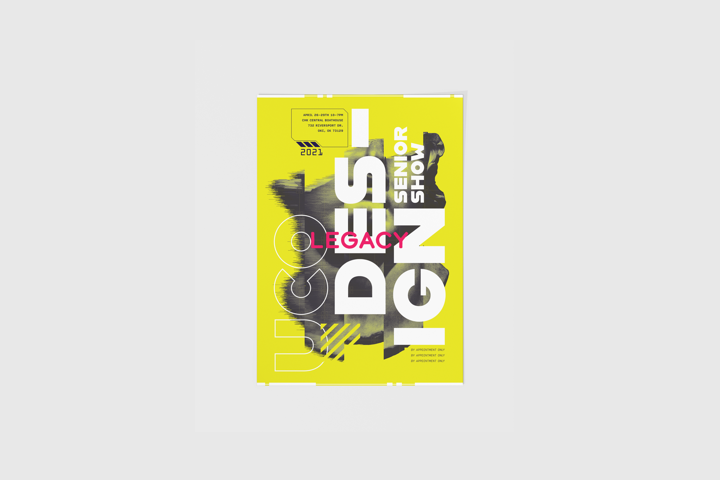 Proposed senior show poster designs for the School of Design at the University of Central Oklahoma.